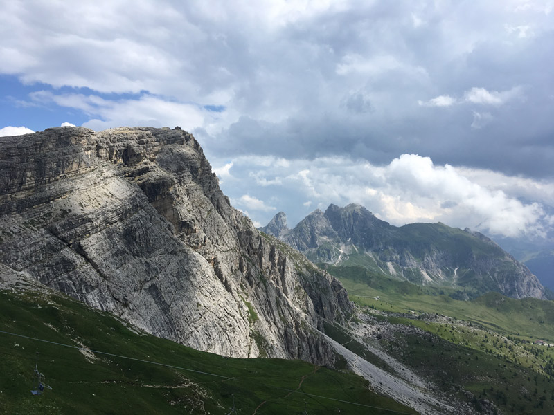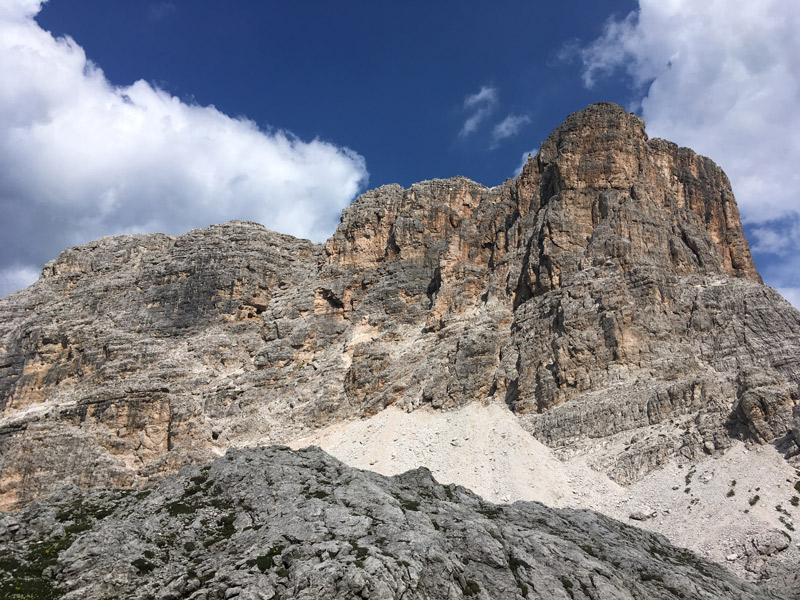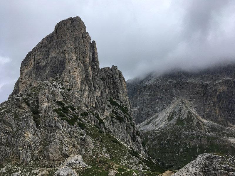 Na samej górze znajduje się schronisko i dużo pięknych widoków na sporą część Dolomitów. Bardzo dobrze widać masyw Tofany, Marmoladę, grupę Selli, Civettę.. Ech, szkoda gadać - to trzeba zobaczyć na własne oczy :) Ja osobiście wybrałem wariant wejścia ferratą Kaiserjägersteig i zejścia fortyfikacjami. Bardzo zróżnicowana kombinacja i przede wszystkim nie było dużego tłoku po drodze.