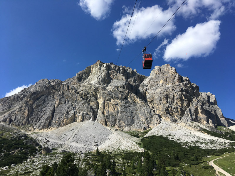 Lagazuoi góruje nad przełęczą Falzarego i jest to zdecydowanie najpopularniejszy cel tutaj. Głównie ze względu na kolejkę linową, którą można się szybko i bezproblemowo dostać na szczyt. Góra składa się z dwóch wierzchołków - Małego (2788 m.n.p.m.) i dużego (2835 m.n.p.m.) Lagazuoi. Na ten mniejszy prowadzi kolejka i to tam znajduje się większość pamiątek z czasów I Wojny Światowej. Dostać się na szczyt można na parę sposobów, wszystkie zaczynają się przy stacji kolejki linowej na przełęczy Falzarego. Każde wejście zajmie nam ok. 2,5 godziny. Oto one: