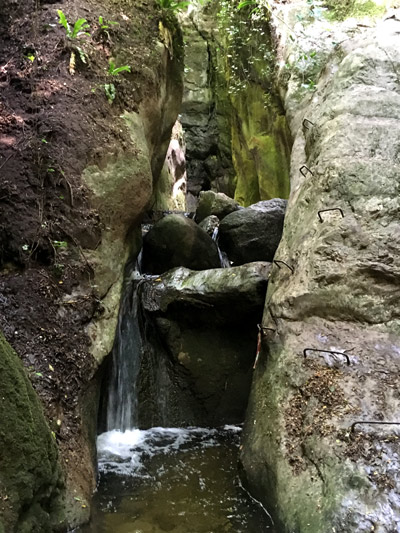 Niedługa, nie znaczy nudna. A wręcz przeciwnie ! Jest to bardzo zróżnicowana przygoda, wyceniona na C. Zaraz na początku czeka nas najtrudniejszy fragment (trudność C) - przeprawa po metalowych klamrach wzdłuż stalowej liny.