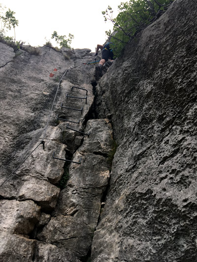 Jako jedyna prezentowanych posiada długie, jak na warunki Gardy dojście - całe 1,5 godziny. Tyle samo trwa zejście. Razem z 2,5 godziny tworzy ono całkiem wymagające kondycyjnie połączenie. Ale jest naprawdę warto.