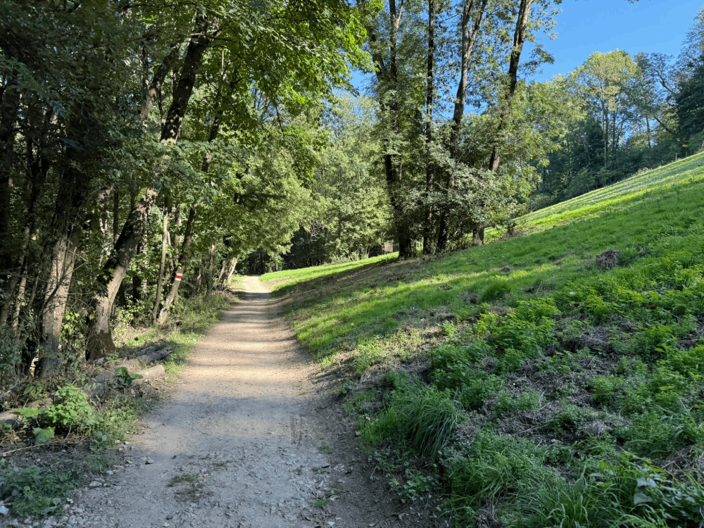 Początek wędrówki to spokojny spacer lasem. Szlak prowadzi przez piękny bukowy las, charakterystyczny dla Wienerwaldu. Droga jest szeroka, wygodna i doskonale oznakowana - kierujemy się na Jägerwiese/Hermannskogel. Po około 40 minutach spokojnej leśnej wędrówki docieramy do Jägerwiese - i tutaj zaczyna się prawdziwa atrakcja, szczególnie dla rodzin z dziećmi!