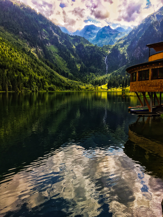 Trochę mało było nam górskich jezior (tych nigdy za wiele!), więc na obiad postanowiliśmy skonsumować alpejskiego pstrąga w restauracji nad jeziorem Steirischer Bodensee. Był co najmniej tak wyborny, jak widoki mu towarzyszące. Gorąco polecam !