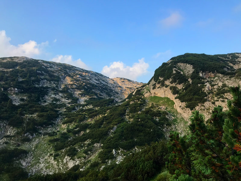 Dzisiaj poznacie rarytas, jedno z moich ulubionych miejsc. Ma wszystko, czego potrzeba do przeżycia gorących dni. Jest jedno jezioro na dole, jedno do góry i klimatyczne, niewielkie schronisko pomiędzy nimi. Czego chcieć więcej ? Nasz cel leży na zachodnim krańcu pasma Totes Gebirge przy granicy Górnej Austrii i Styrii. Rejon ten cechuje duża ilość pięknych jezior i skromna obecność masowej turystyki. To lubię ! Już chwilę po zjechaniu z autostrady robi się magicznie - wita nas strażnik Salzkammergut - Traunstein wraz z najgłębszym jeziorem Austrii u stóp, czyli Traunsee. Aby dotrzeć do naszego ukrytego skarbu musimy przejechać całe jezioro wzdłuż drogą nr 145, aż do miejscowości Ebensee i tam odbić w kierunku Offensee. Po zostawieniu samochodu na końcu drogi i ogarnięciu ekwipunku można ruszać w kierunku przygody ! Jeśli posiadasz zapas czasu i chęć na kąpiel (a przede wszystkim pogodę), to zanurzenie się w przepięknym, czystym i ciepłym Offensee będzie świetnym pomysłem. Widok na Totes Gebirge o poranku Jednak nie warto zbyt długo na dole zwlekać - czeka Cię jeszcze jedno piękne jezioro do góry i trochę potu zostawionego na szlaku. Do dzieła ! Po ok. 10 minutach wędrówki wzdłuż jeziora odbijamy za znakiem w lewo i kierujemy się na Rinnerhütte. Nie daj się zwieść łagodnie wznoszącej się szerokiej drodze. Po chwili w prawo odbija już dużo węższa ścieżka. I tu zaczyna się prawdziwa zabawa - przed sobą mamy około 800 metrów stromego podejścia, 2 godziny intensywnego pocenia. Technicznie nie ma żadnych trudności - jest parę miejsc zabezpieczonych linką i metalowe schody, ale bez żadnych przepaści, czy dużych ekspozycji. Generalnie widywałem ciekawsze szlaki prowadzące do schronisk, z lepszymi widokami itd. Jednak ten tysiąckrotnie rekompensuje to, co czeka Cię do góry, czyli ...