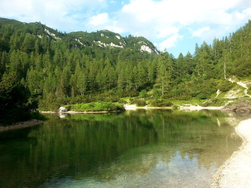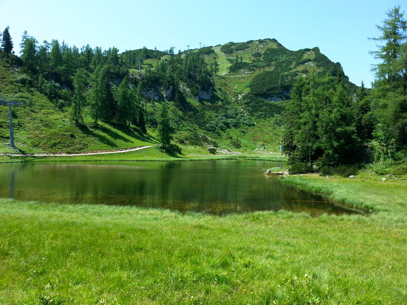 Trasa wiedzie przez 6 zbiorników, nie wszystkie zasługują na miano jeziora (raczej większej kałuży :)). Nie robi mi to wielkiej różnicy, bo jest naprawdę przepięknie ! My robiliśmy tą trasę w najpiękniejszym okresie - pod koniec czerwca. I Tobie też polecam ten czas, bo wtedy przyroda potrafi dosłownie oszołomić. Niektórzy tylko specjalnie dla roślinności przyjeżdżają w te strony. Przełom czerwca i lipca to idealny moment ! Tauplitzalm jest często nazywane naturalnym ogrodem botanicznym, co w ogóle nie jest przesadą. Łąki dosłownie obsypane są rzadkimi gatunkami alpejskich kwiatów, ich barwa bije po oczach, a bogactwo zapachów oszołamia.Oto pierwsze "jezioro" - Krallsee Pierwsze jezioro na naszej drodze trafiamy już po jakiś 10 minutach. Jest to niewielkie Krallsee. Dalsza droga prowadzi nas do dużego Großsee, za którym ukrywa się niewielkie Märchensee z bardzo ciepłą wodą - najlepsze do kąpania ze wszystkich zbiorników, które napotkamy.Tauplitzsee Im dalej, tym jeziora stają się coraz bardziej piękne. Tauplitzsee chwyciło mnie za serce, ale tak naprawdę to znajdujące się dalej i trochę niżej Steirersee jest hitem wyprawy. Ale za nim do niego dotrzemy możemy się posilić pysznym jedzonkiem i przepięknym widokiem w Steirerseehütten.widok na Steirerseehütten i Steirersee Ostatni odcinek wyprawy - wiodący na dół - do samego Steirersee jest trochę bardziej wymagający od pozostałej części trasy. Droga wiedzie wąską ścieżką z dużą ilością korzeni - trzeba uważać przy stawianiu kroków. Tamtego dnia temperatura była bardzo wysoka, duchota gęstej kosodrzewiny utrudniała marsz. W końcu zeszliśmy do Steirersee i poszliśmy dalej do Schwarzensee, którego brzeg był okupowany przez krowy. Jeżeli masz ochotę i czas, to możesz iść dalej do Leistenalmhütte. To jest 5km i ok 1,5h dodatkowego marszu. My woleliśmy spożytkować ten czas na piknik i kąpiel w Steirersee. A tak wygląda świetne miejsce na odświeżającą kąpiel na końcu Steirersee Warto wspomnieć, że mimo szczytu sezonu i upalnej pogody przez większość czasu byliśmy na szlaku sami. Po wypoczynku zebraliśmy się w drogę powrotną do Hollhaus. To był zachwycający dzień!