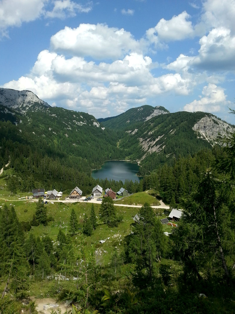 Będąc pod wrażeniem piękna dnia pierwszego, zebraliśmy się w miarę wcześnie i postanowiliśmy zdobyć Großes Tragl, piękny szczyt widokowy o wysokości 2163 m.n.pm. Pogoda była duszna, tak jak dzień wcześniej, ale humor i motywacja pchały nas do przodu. Droga wiedzie do Steirerseehütten, ale tym razem nie schodzimy do jeziora, tylko zgodnie ze znakami idziemy szlakiem w lewo, pod górę.